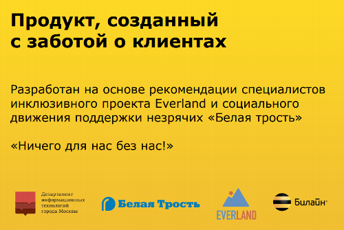 ИЛ: Мы стараемся сделать так, чтобы предоставление сервисных услуг, консультирование клиентов с ограниченными сервисными возможностями, было максимально комфортным, максимально конструктивным. Для этого в своих контактных центрах мы внедрили специальные алгоритмы взаимодействия с пациентами различной инвалидности. Мы учились тому, как доносить до таких абонентов особенности пользования продуктами. Совместно с проектом Everland, с Фондом Действия, мы разработали множество рекомендаций, которые теперь используем не только в собственных контактных центрах, но также стараемся приобщить к процессам как можно больше различных компаний. Стараемся популяризовать эту историю, чтобы она была актуальна не только для Билайна и не только для телеком-отрасли.