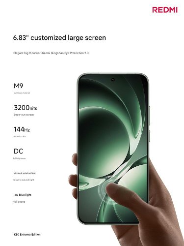 Также сообщается о стереодинамиках и линейном двигателе по оси X. Сообщается, что K80 Ultra получит металлическую среднюю рамку и заднюю крышку из стекловолокна. Размеры устройства составляют 163,08 x 77,93 x 8,18 мм, а вес - 219 граммов.