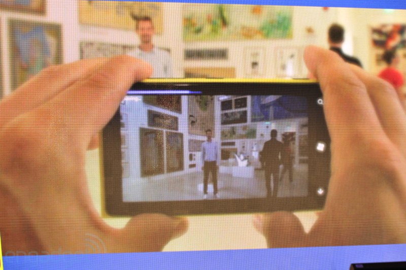Ударные особенности - Nokia PureView (как бы от Карл Цейс, то есть под брендом Карл Цейс) камера с сенсором 8.7 мпикс, bsi, апертурой 2.0, оптической стабилизацией системы линз ("плавающие линзы", на самом деле, подпружиненные). Этого уже достаточно, чтобы назвать аппарат интересным, теперь возможна будет съемка в сумерках. Особенно, если поверить заявлению Джо Харлоу, что для съемки достаточно в 5 или более раз меньшего освещения, чем другим смартфонам. Частично это достигнуто за счет апертуры, но, вероятно, не только в ней дело.