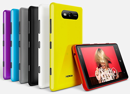 В качестве решения для тех, кому не требуется максимум функционала, предложена Lumia 820, получившая корпус из поликарбана и 4,3 дюймовый дисплей. В отличие от монолитного Lumia 920, задняя панель Lumia 820 съемная и для этого смартфона будут доступны разноцветные корпуса. Также как многие функции старшей модели, включая беспроводную зарядку. Аппарат будет доступен в красном, желтом, сером, голубом, пурпурном, белом и черном цветах.