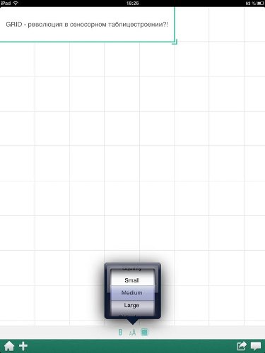 Текст не обязательно печатать. В любом смартфоне и планшете есть микрофон, поэтому разрешается просто диктовать. Забавно организована работа с размером шрифта. Вы не встретите меню выбора кегля: 14-й там, 22-й или 40-й. По умолчанию текст в ячейку вводится максимально крупно. По мере того, как вы продолжаете писать, величина букв автоматически уменьшается. Если достигнуто минимальное комфортное для чтения значение, внутри ячейки включается прокрутка, позволяющая вместить столько информации, сколько вашей душе угодно. Но при желании размер шрифта всегда можно изменить: доступны пять вариантов – от «малюсенького» до «огромного».