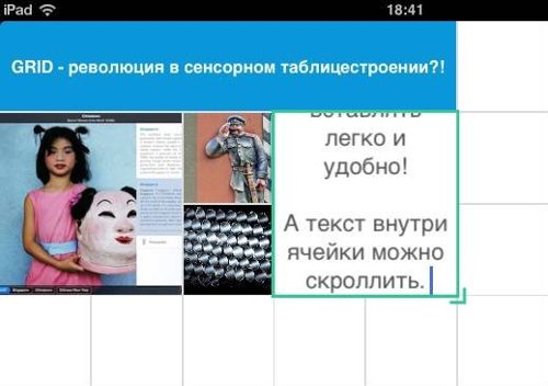 А посмотреть есть на что: вместо excel’евских «листов» здесь бесконечный скролл во всех направлениях, содержимое любой ячейки тоже может быть внушительным – оно прокручивается пальцем. «Не отходя от кассы» воспроизводится видео, и вообще с таблицей можно всячески взаимодействовать.