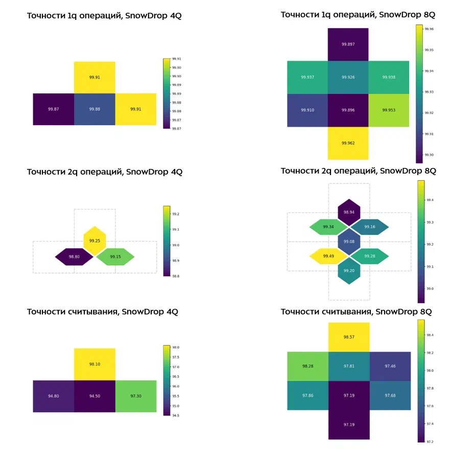 По заявлению разработчиков, новые чипы демонстрируют высокие показатели: точность однокубитных операций на SnowDrop 8Q достигает 99.927%, двухкубитных — 99.21%, точность считывания — 97.75%. Все параметры пользователи могут проверить самостоятельно через облачный интерфейс.